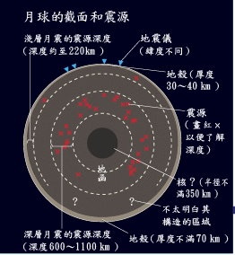 藤村參事說:“月球的地震有以深度大約到220公里為震源的『淺層月震』,以及以深度600公里~1100公里為震源的『深層月震』”。由于月球半徑大約是1738公里,所以深層月震的震源相當(dāng)靠近月球中心。至于地球,半徑大約6378公里,地震的震源最深大約670公里。